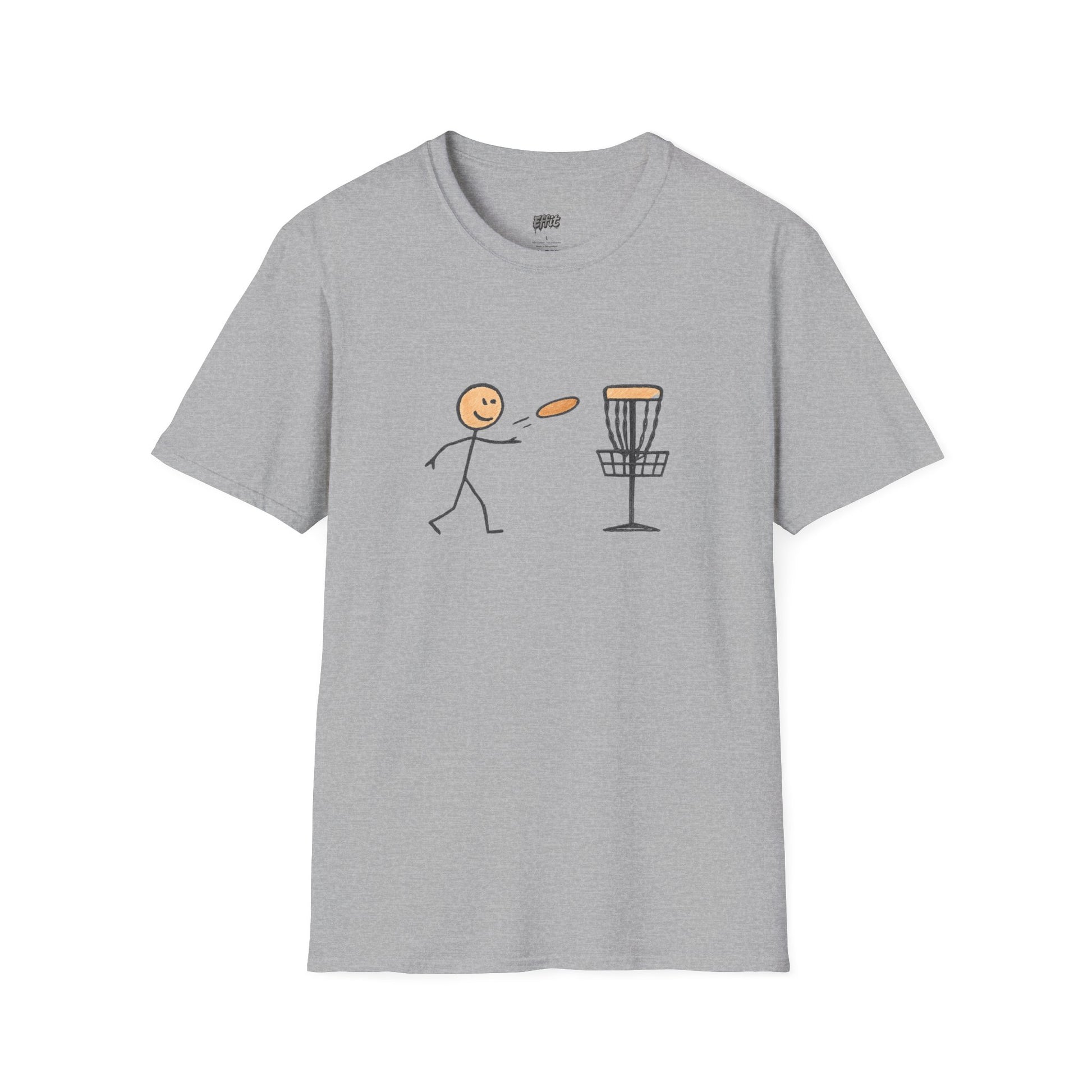 Bring your love for disc golf to life with this lighthearted stick figure design! This shirt features a cheerful stick figure lining up the perfect putt, capturing the joy of every disc golfer’s favorite moment: sinking it in the basket. The minimalist artwork with playful orange highlights makes it easy to wear on and off the course.
