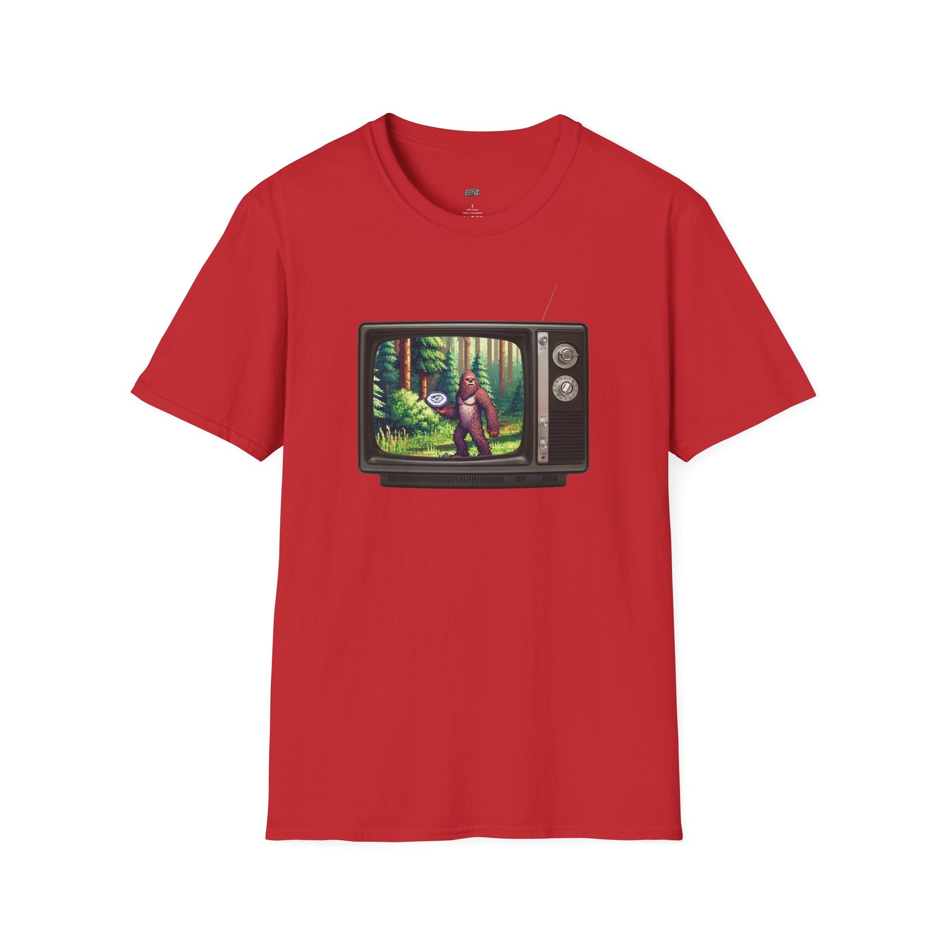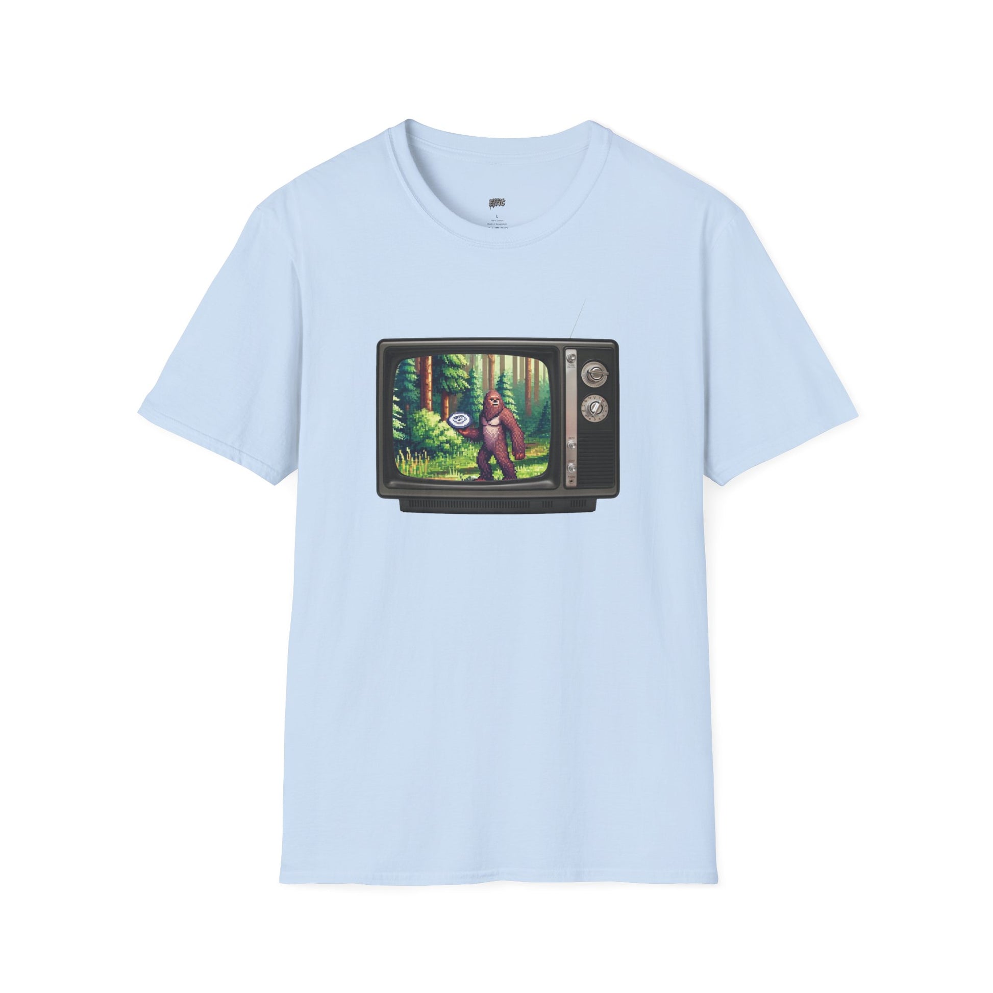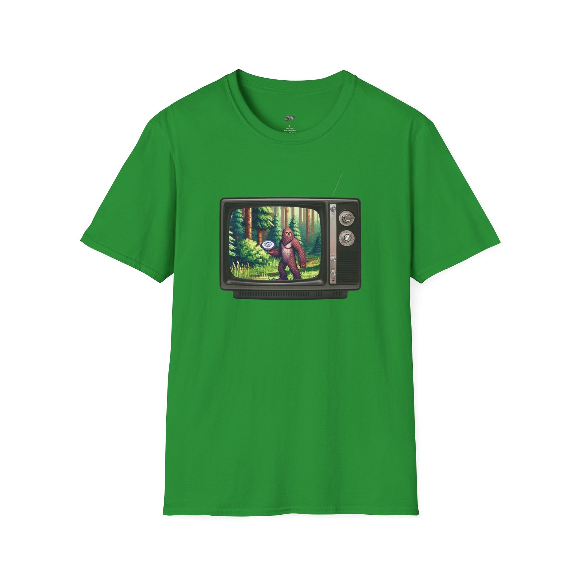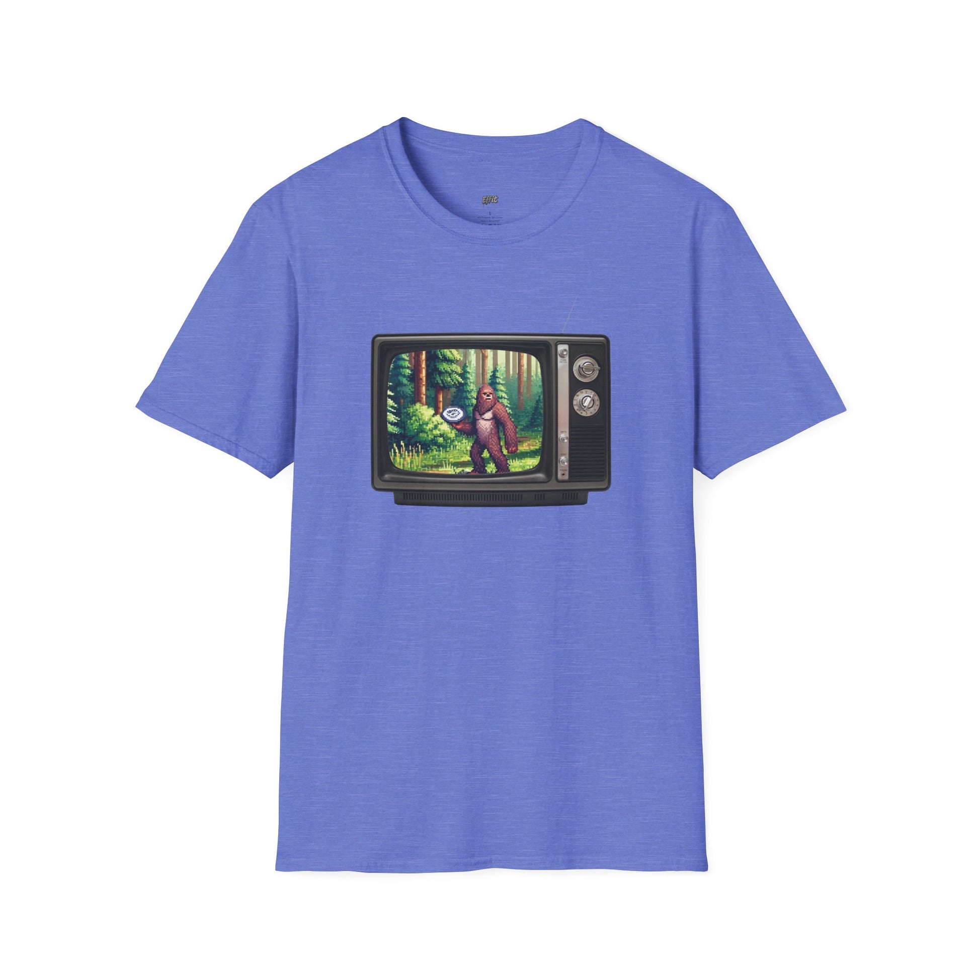 Step into legend with this playful design featuring Sasquatch mid-throw on a vintage TV screen. Set in a lush forest scene, this cryptid’s disc golf moment is captured like a grainy documentary, only this time, it’s real! Whether you believe in Bigfoot or just love a good throw, this tee is the perfect mix of retro, myth, and disc golf magic. A conversation starter for sure.